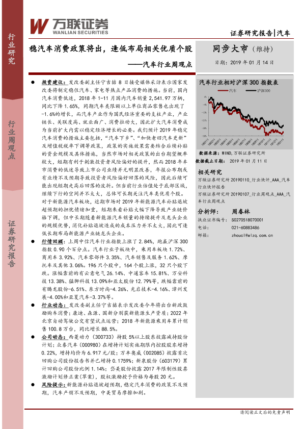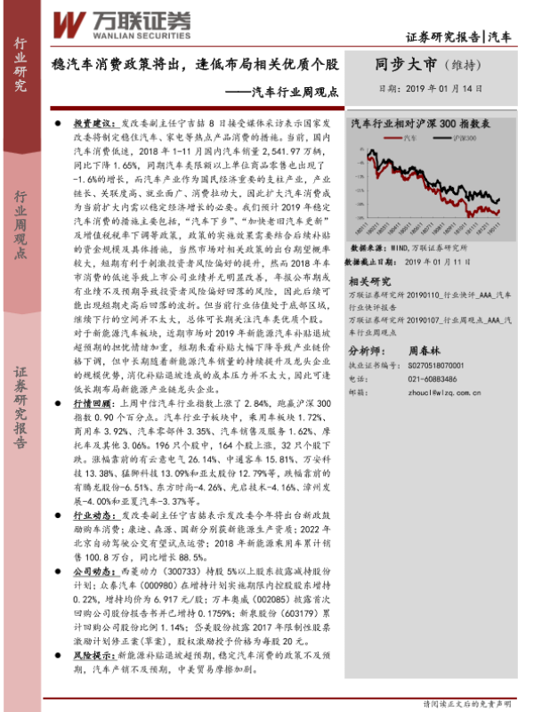 【万联证券】【20190114】20190114-万联证券-汽车行业周观点:稳汽车消费政策将出,逢低布局相关优质个股-13页