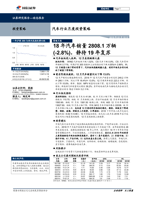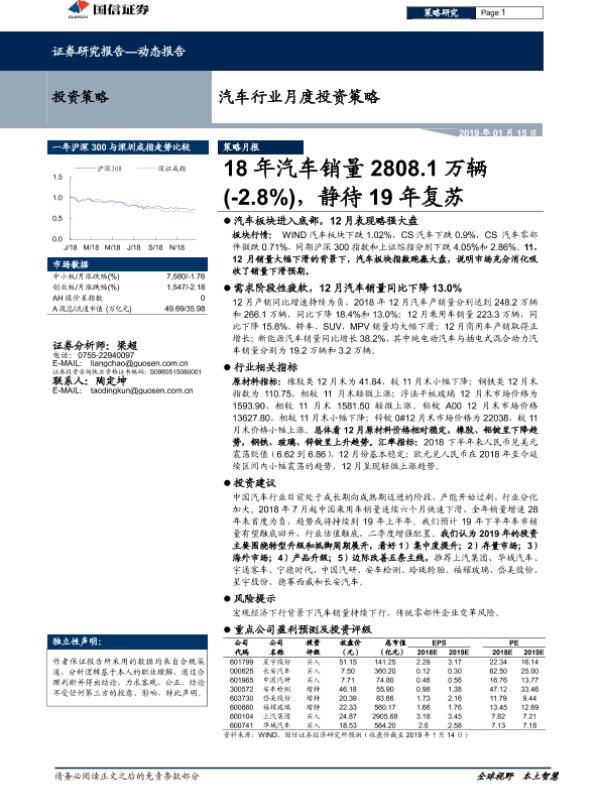 【国信证券】【20190115】20190115-国信证券-汽车行业月度投资策略:18年汽车销量2808.1万辆(-2.8%),静待19年复苏-25页