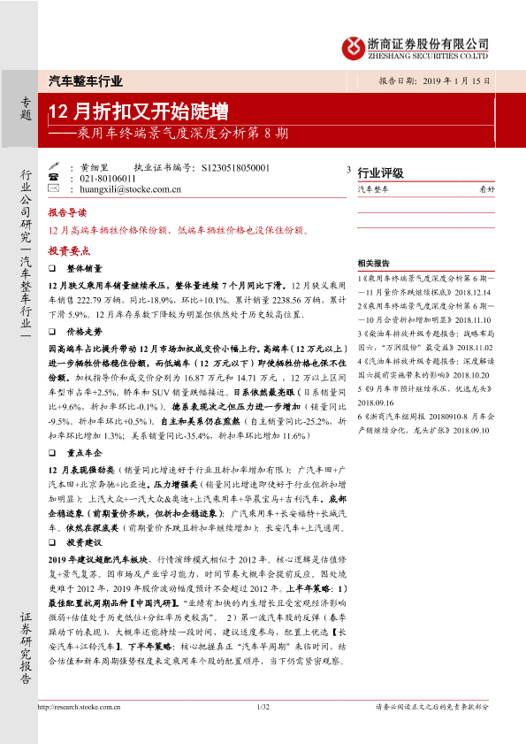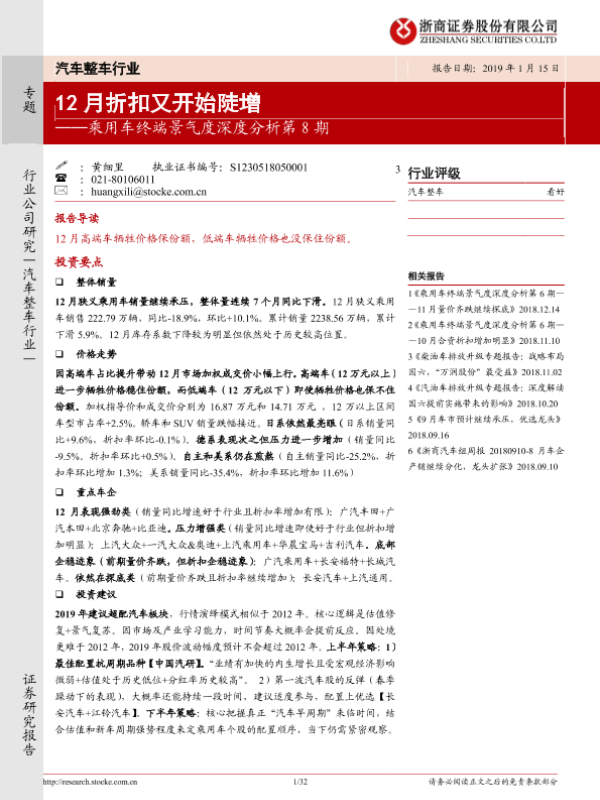 【浙商证券】【20190115】乘用车终端景气度深度分析第8期:12月折扣又开始陡增-32页