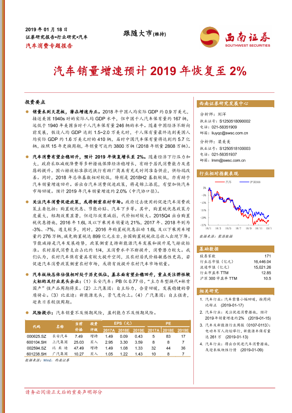 【西南证券】【20190118】汽车消费专题报告:汽车销量增速预计2019年恢复至2%-15页