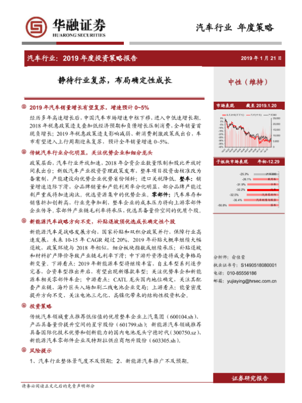 市场分析 投资策略 新能源汽车 汽车行业 销量预测