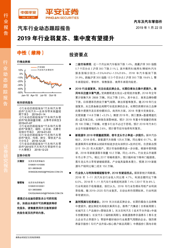 【平安证券】【20190122】20190122-平安证券-汽车行业动态跟踪报告:2019年行业弱复苏、集中度有望提升-24页