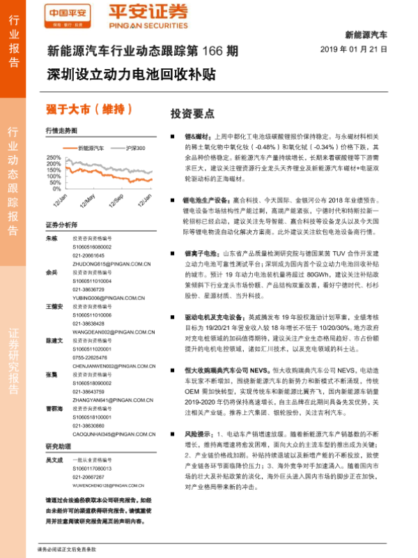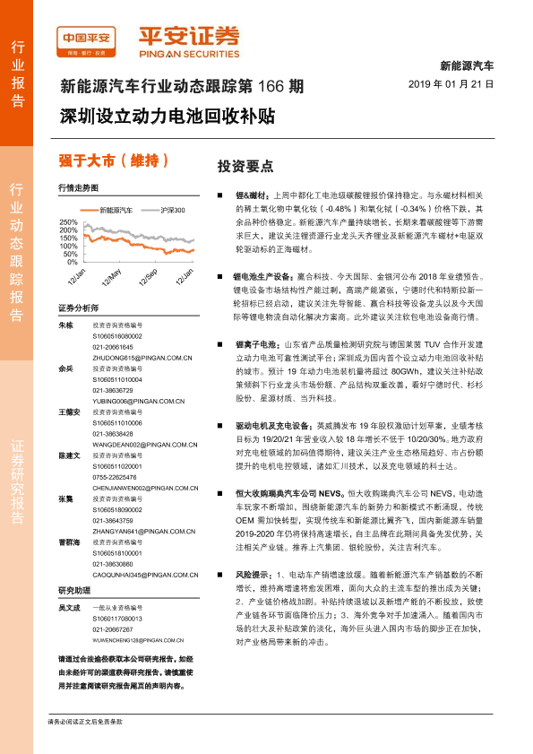 【平安证券】【20190121】20190121-平安证券-新能源汽车行业动态跟踪第166期:深圳设立动力电池回收补贴-12页