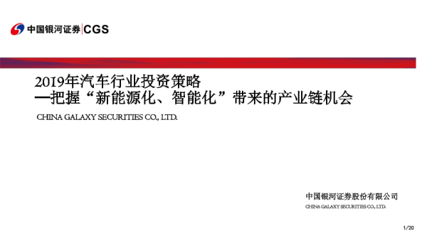 【银河证券】【20190122】2019年汽车行业投资策略:把握“新能源化、智能化”带来的产业链机会-20页