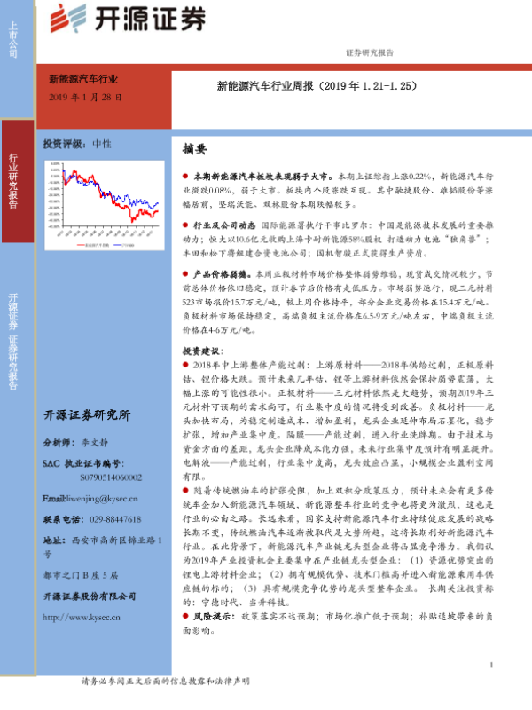产品价格 投资建议 新能源汽车 行业动态 证券研究