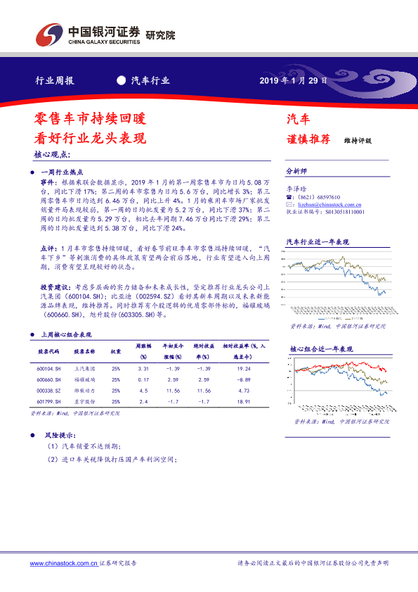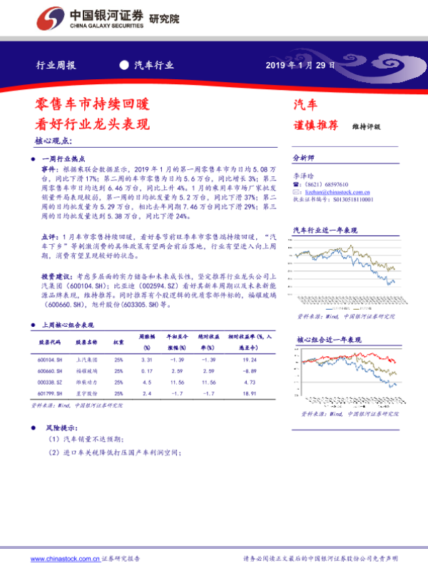 【银河证券】【20190129】20190129-中国银河-汽车行业周报:零售车市持续回暖 看好行业龙头表现-19页