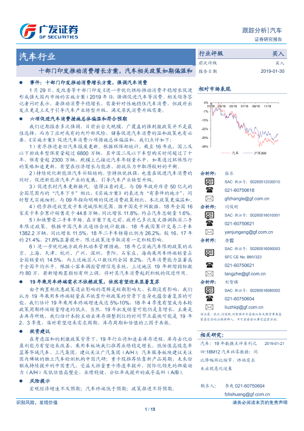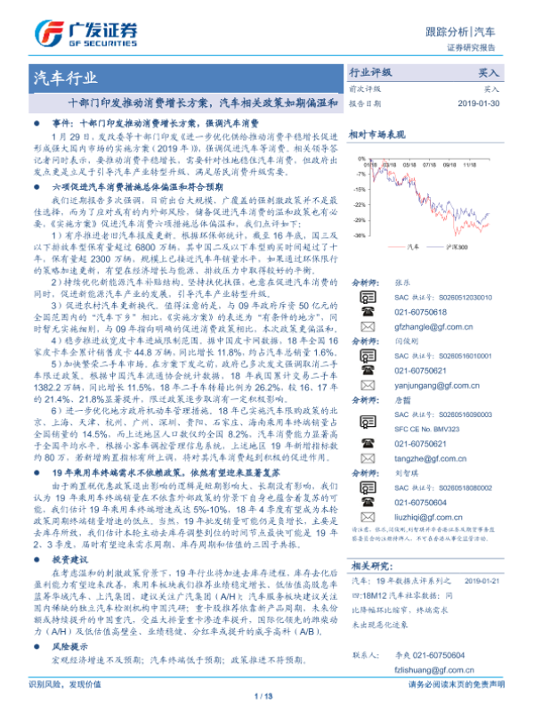 【广发证券】【20190130】十部门印发推动消费增长方案,汽车相关政策如期偏温和-13页