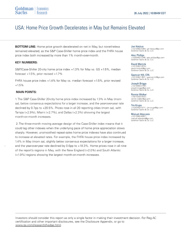 【Goldman Sachs】【20220726】USA Home Price Growth Decelerates in May but Remains Elevated-2页