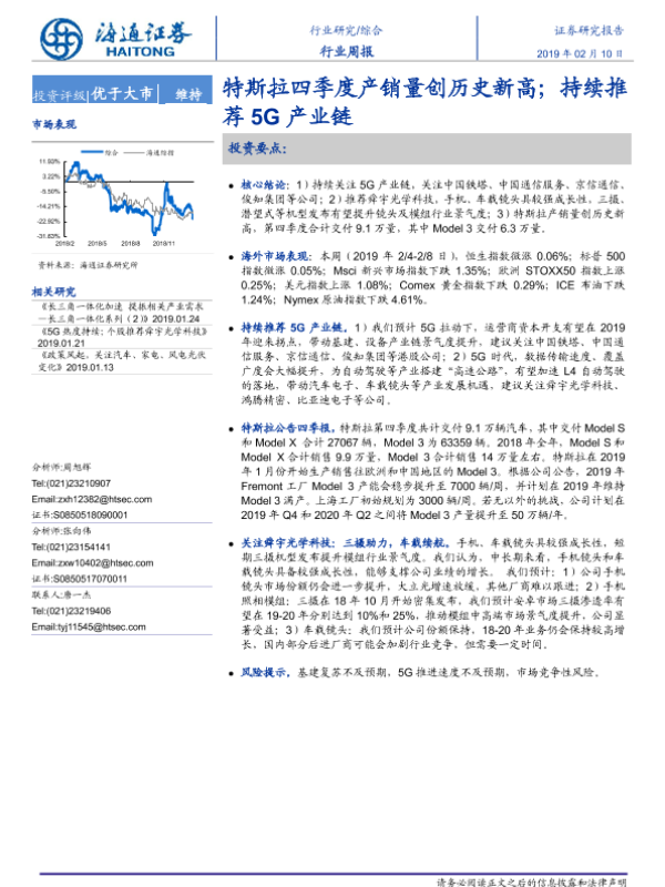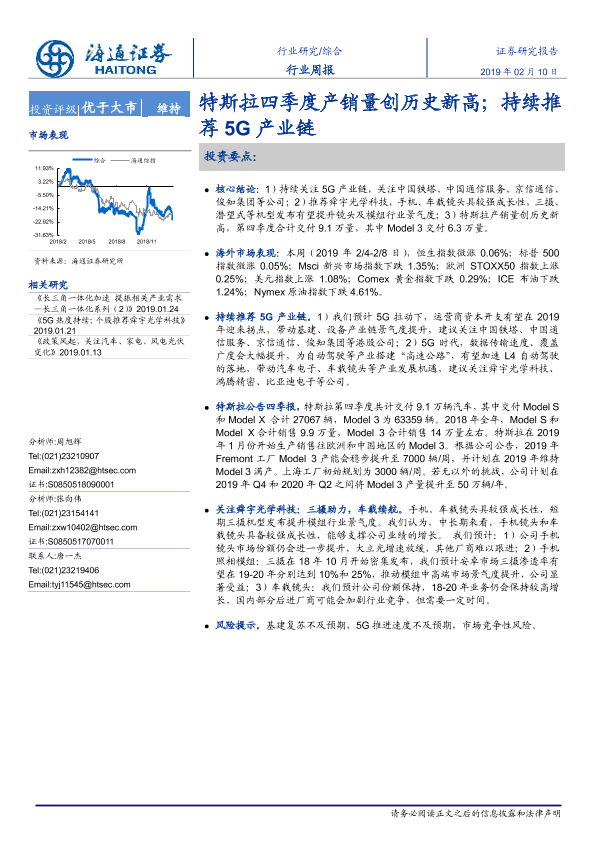 【海通证券】【20190210】20190210-海通证券-综合行业周报:特斯拉四季度产销量创历史新高;持续推荐5G产业链-11页