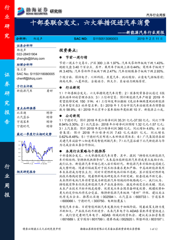 【渤海证券】【20190211】20190211-渤海证券-新能源汽车行业周报:十部委联合发文,六大举措促进汽车消费-12页
