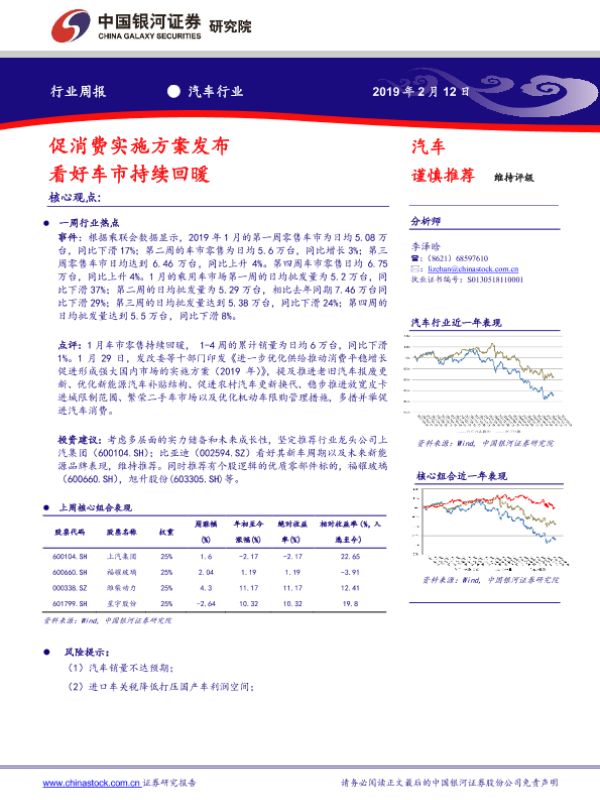【银河证券】【20190212】20190212-中国银河-汽车行业周报:促消费实施方案发布 看好车市持续回暖-19页