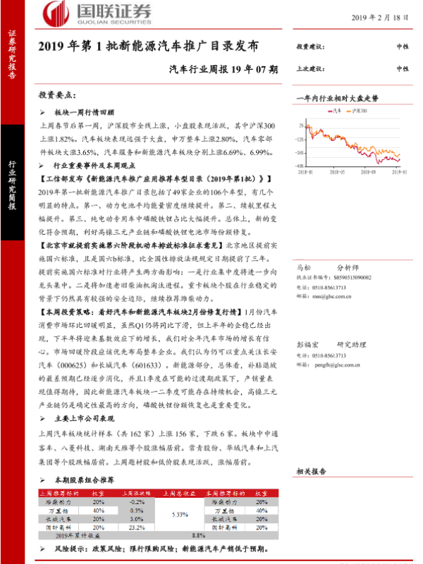 市场表现 投资策略 政策分析 新能源汽车 汽车行业