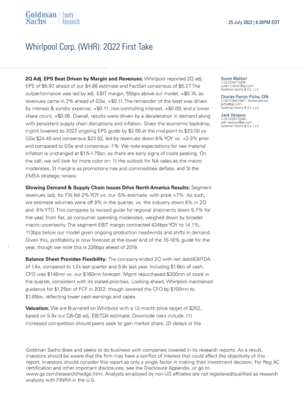 【Goldman Sachs】【20220725】Whirlpool Corp. (WHR) 2Q22 First Take-4页
