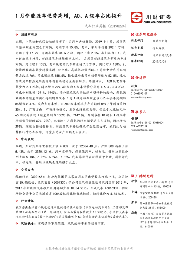 【川财证券】【20190224】20190224-川财证券-汽车行业周报:1月新能源车逆势高增,A0、A级车占比提升-11页