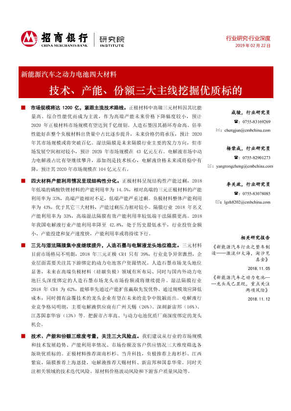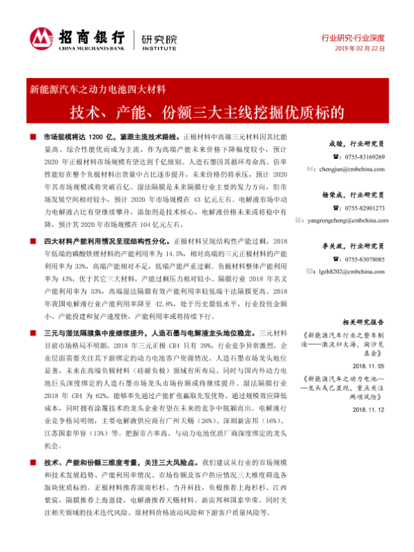 【招商银行】【20190222】新能源汽车之动力电池四大材料行业深度:技术、产能、份额三大主线挖掘优质标的-34页
