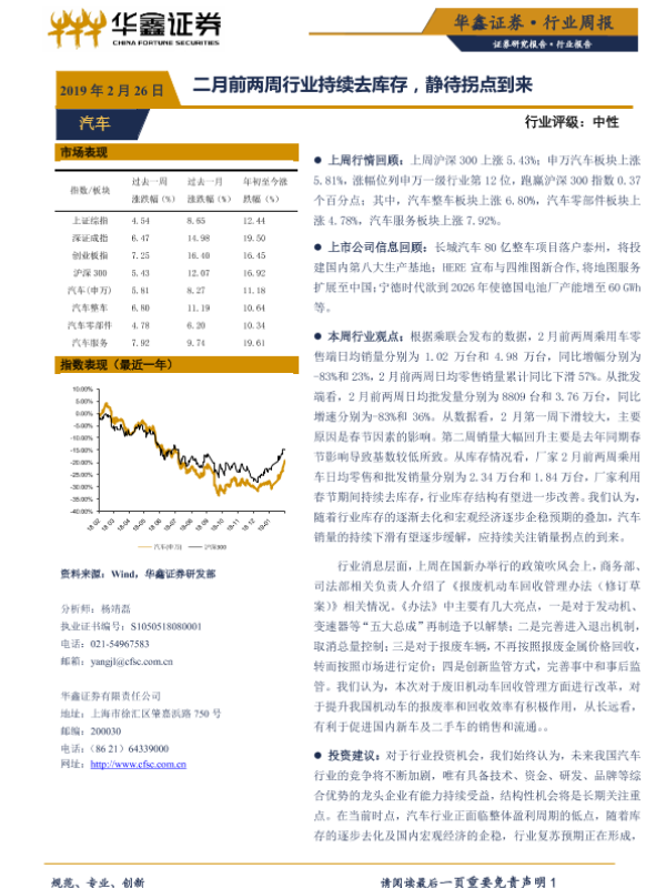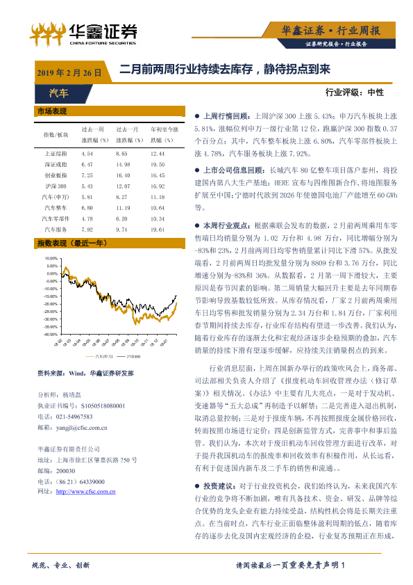【华鑫证券】【20190226】20190226-华鑫证券-汽车行业周报:二月前两周行业持续去库存,静待拐点到来-19页