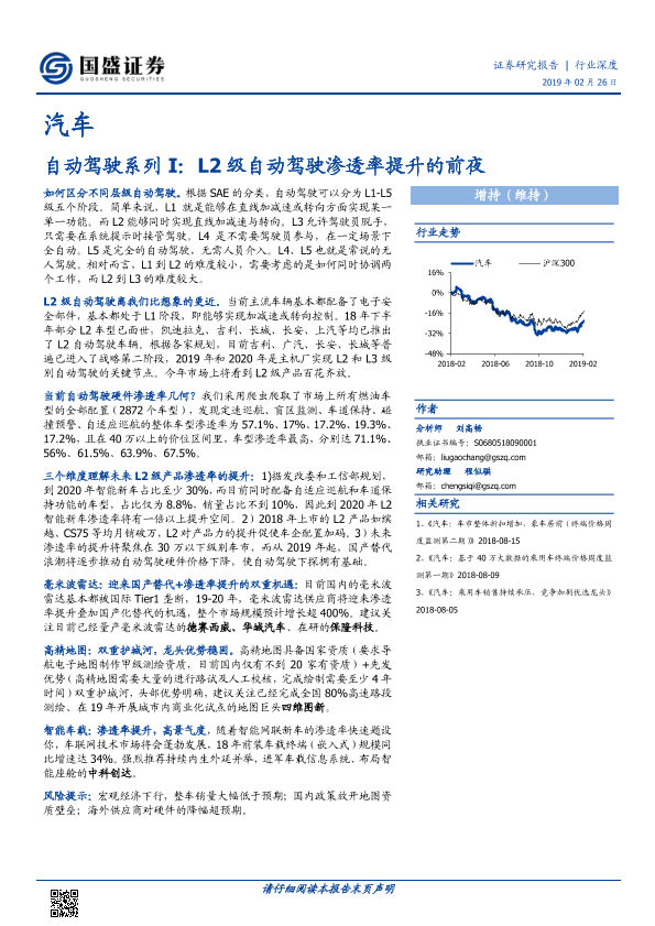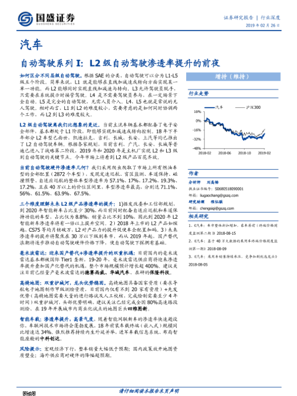 【国盛证券】【20190226】20190226-国盛证券-汽车行业深度:自动驾驶系列I:L2级自动驾驶渗透率提升的前夜-33页