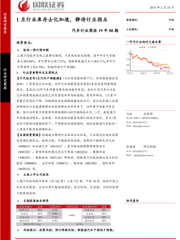 库存去化 投资策略 新能源汽车 汽车行业 销量增速
