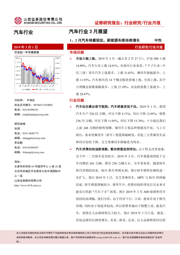【山西证券】【20190301】汽车行业3月展望:1、2月汽车销量较低,新能源车维持高增长-31页