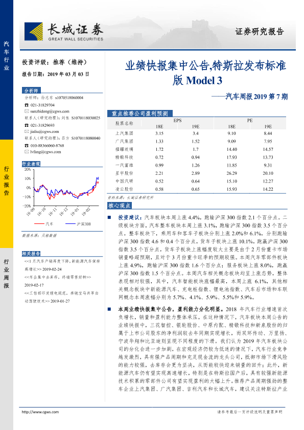 【长城证券】【20190303】汽车周报2019第7期:业绩快报集中公告,特斯拉发布标准版Model3-14页