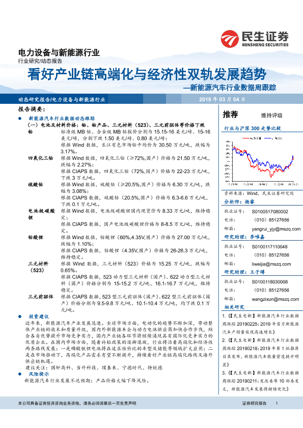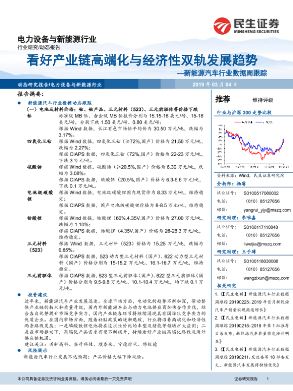 【民生证券】【20190304】20190304-民生证券-新能源汽车行业数据周跟踪:看好产业链高端化与经济性双轨发展趋势-11页
