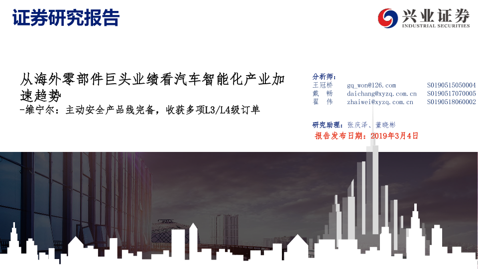 【兴业证券】【20190304】从海外零部件巨头业绩看汽车智能化产业加速趋势:维宁尔:主动安全产品线完备,收获多项L3 L4级订单-28页