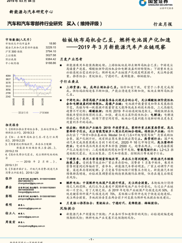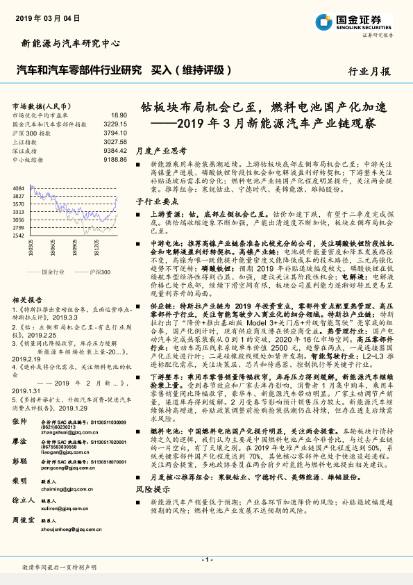 【国金证券】【201903】2019年3月新能源汽车产业链观察:钴板块布局机会已至,燃料电池国产化加速-38页