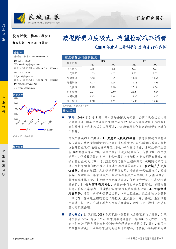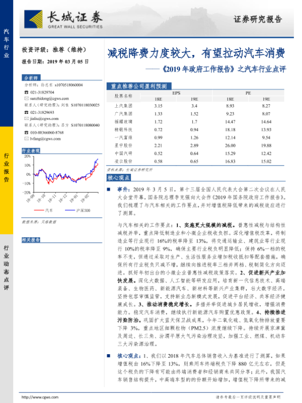 【长城证券】【20190305】2019年政府工作报告之汽车行业点评:减税降费力度较大,有望拉动汽车消费-3页