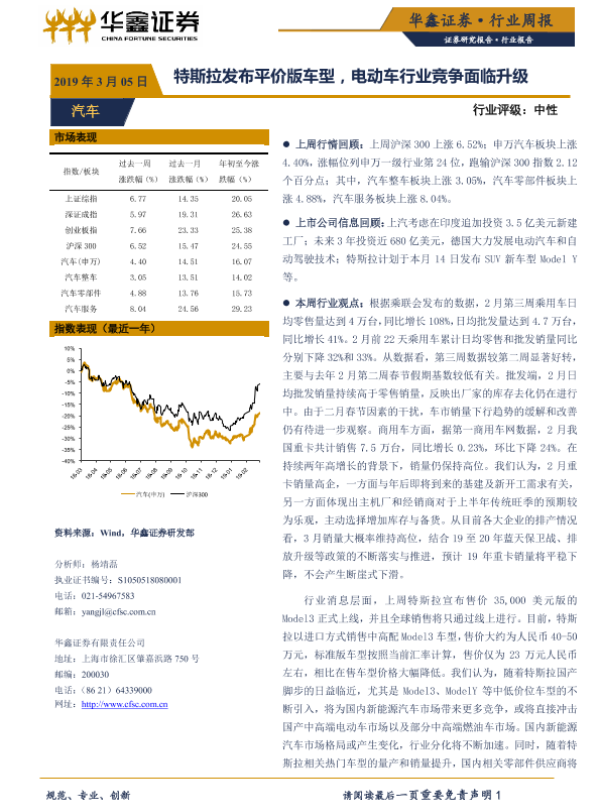 【华鑫证券】【20190305】20190305-华鑫证券-汽车行业周报:特斯拉发布平价版车型,电动车行业竞争面临升级-21页
