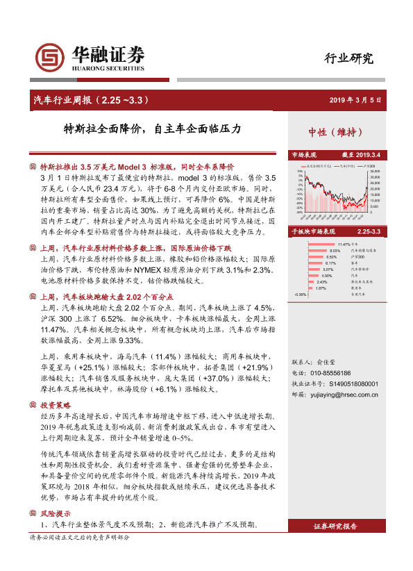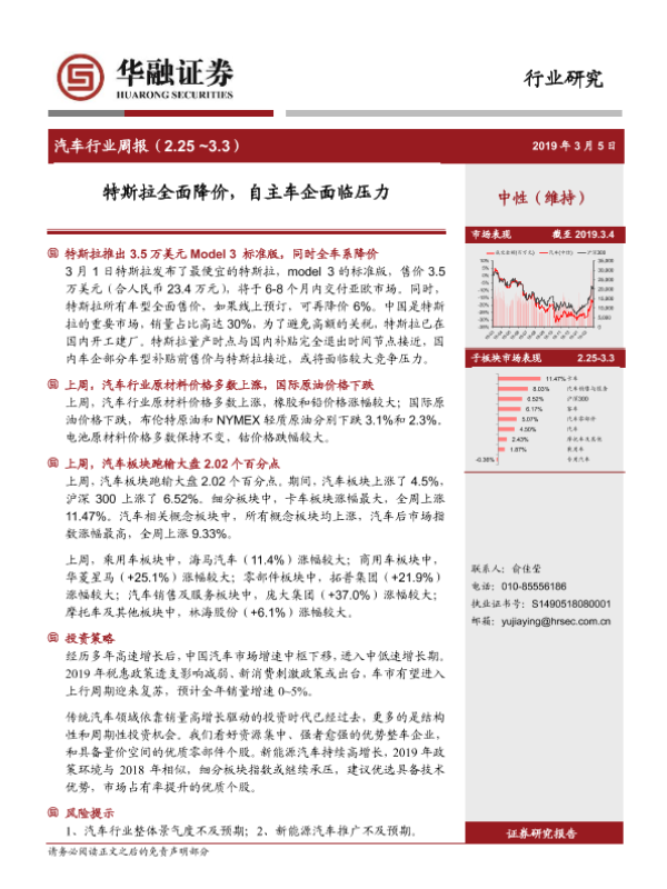 【华融证券】【20190305】20190305-华融证券-汽车行业周报:特斯拉全面降价,自主车企面临压力-13页