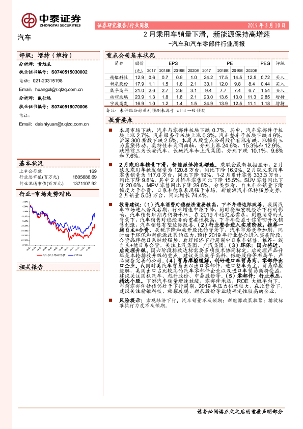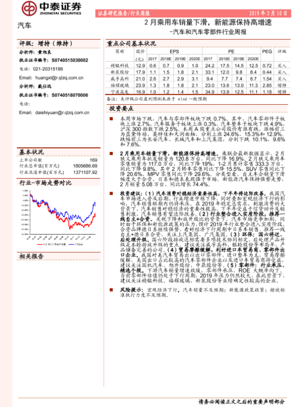 【中泰证券】【20190310】汽车和汽车零部件行业周报:2月乘用车销量下滑,新能源保持高增速-9页