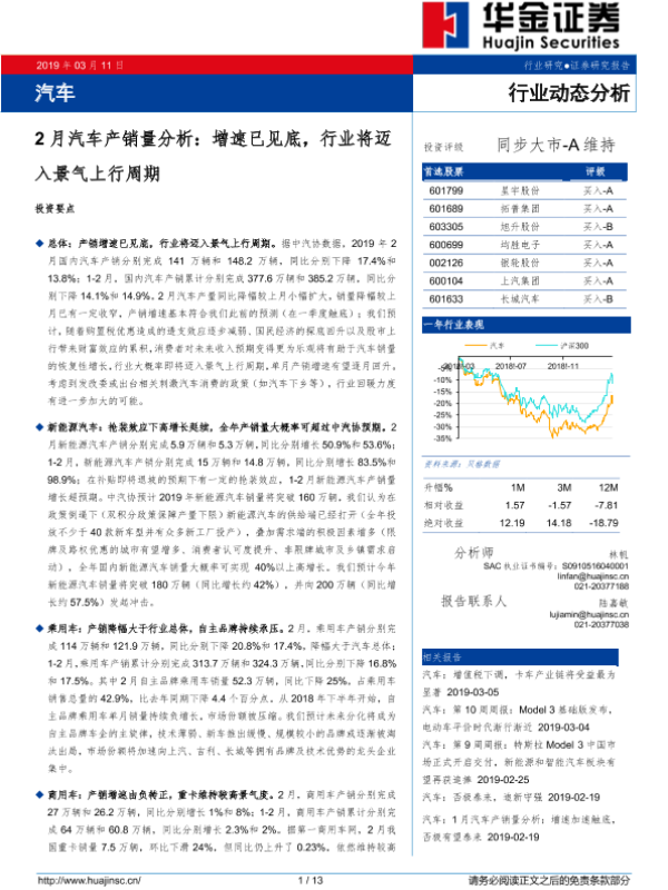 【华金证券】【20190311】20190311-华金证券-汽车行业动态分析:2月汽车产销量分析:增速已见底,行业将迈入景气上行周期-13页
