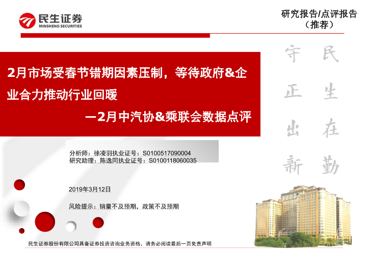 【民生证券】【20190312】2月中汽协&乘联会数据点评:2月市场受春节错期因素压制,等待政府&企业合力推动行业回暖-5页