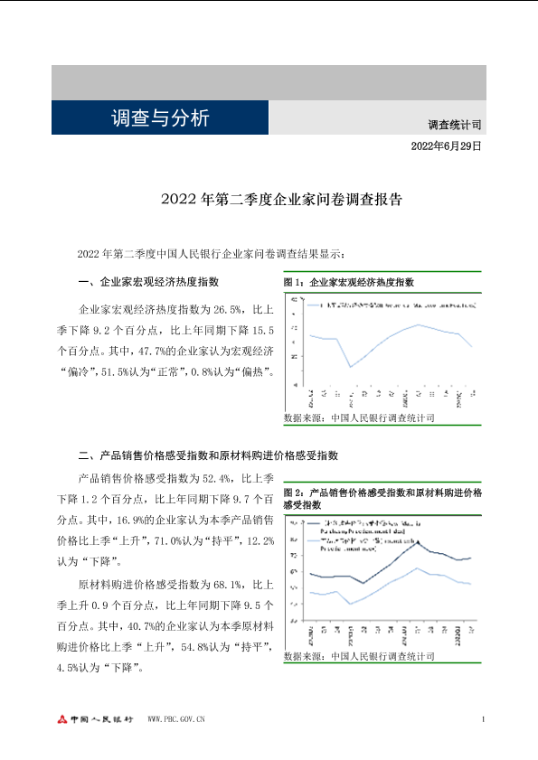 【中国人民银行调查统计司】【20220629】2022年第二季度企业家问卷调查报告-6页