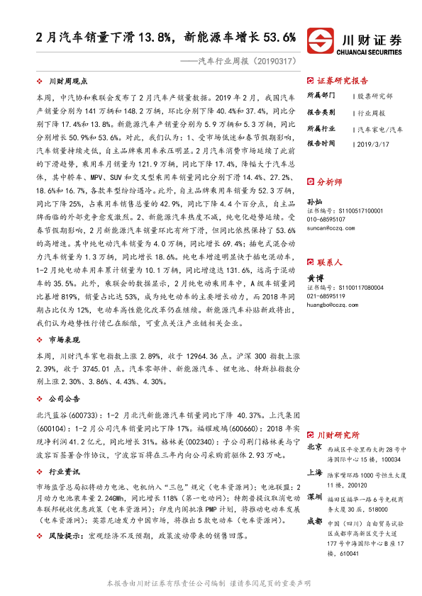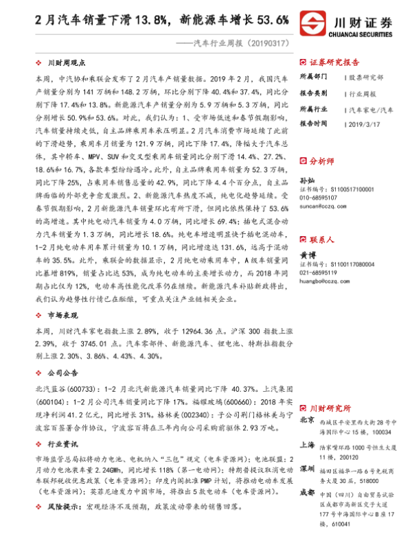 【川财证券】【20190317】2月汽车销量下滑13.8%,新能源车增长53.6%-10页