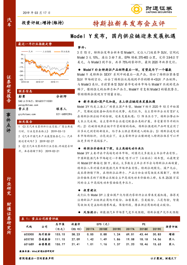 【财通证券】【20190317】20190317-财通证券-汽车行业事件点评:特斯拉新车发布会点评-Model Y发布,国内供应链迎来发展机遇-7页