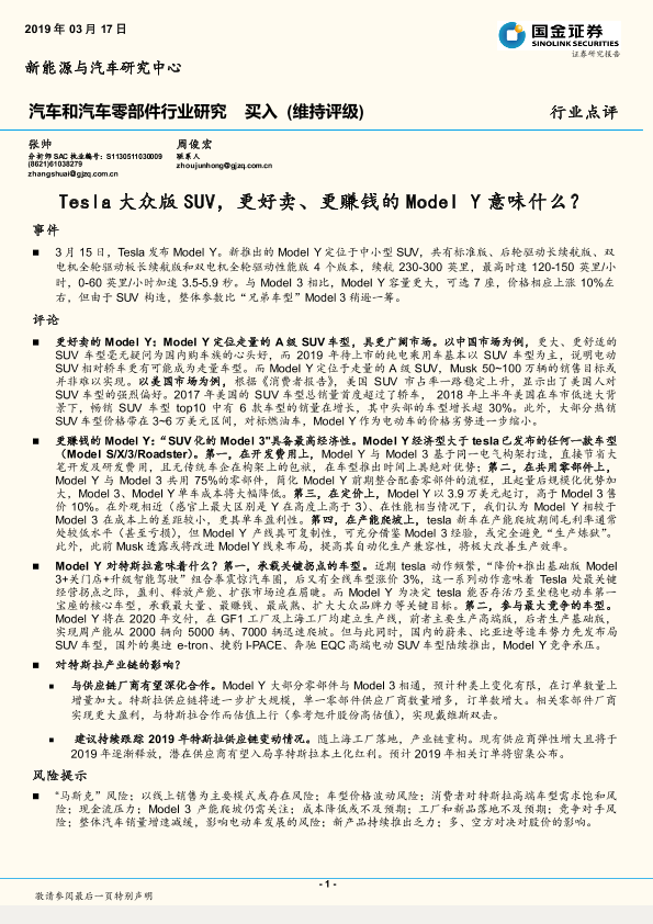 【国金证券】【20190317】Tesla大众版SUV,更好卖、更赚钱的Model Y意味什么?-7页