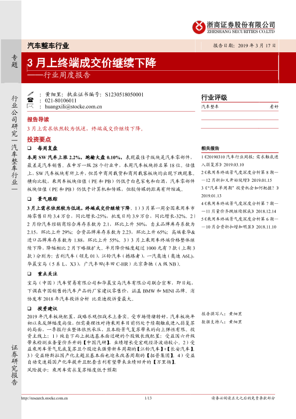 【浙商证券】【20190317】20190317-浙商证券-汽车整车行业周度报告:3月上终端成交价继续下降-13页