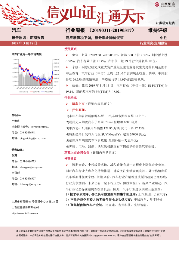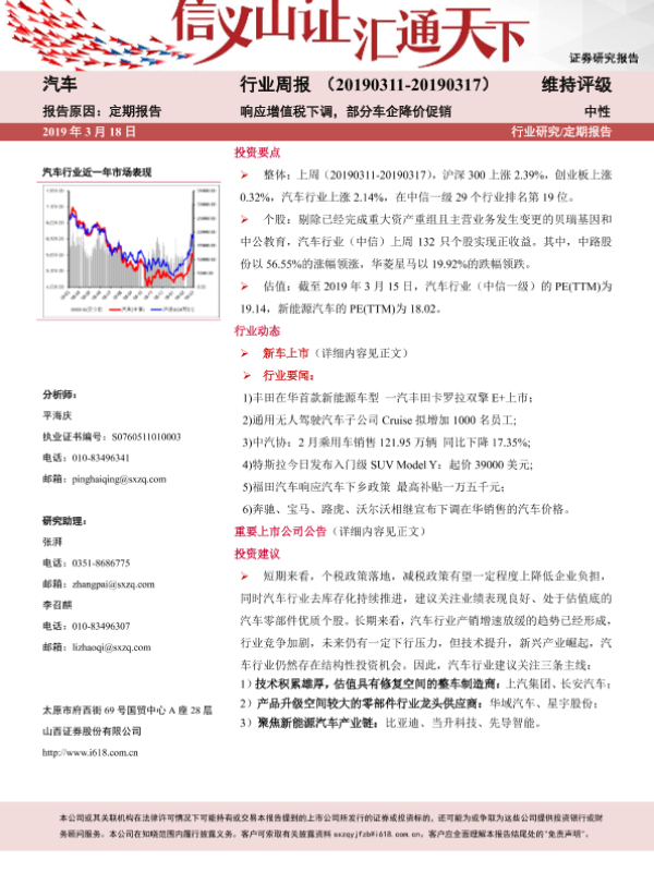 【山西证券】【20190318】20190318-山西证券-汽车行业周报:响应增值税下调,部分车企降价促销-23页