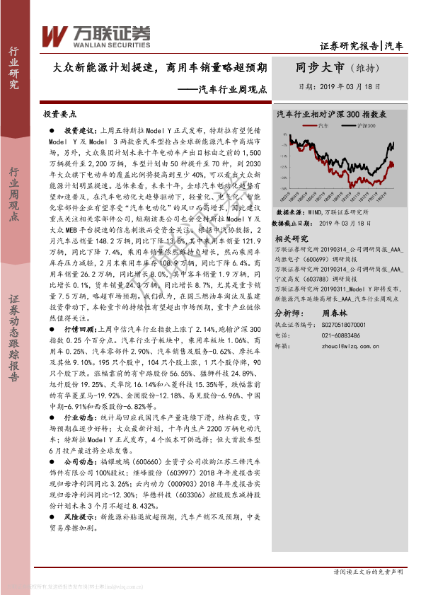 【万联证券】【20190318】20190318-万联证券-汽车行业周观点:大众新能源计划提速,商用车销量略超预期-13页