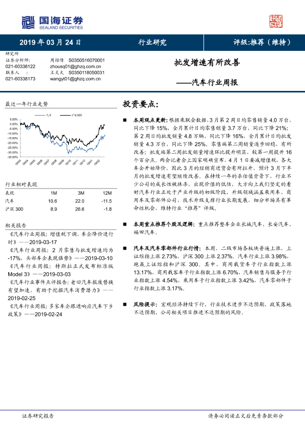 【国海证券】【20190324】20190324-国海证券-汽车行业周报:批发增速有所改善-21页