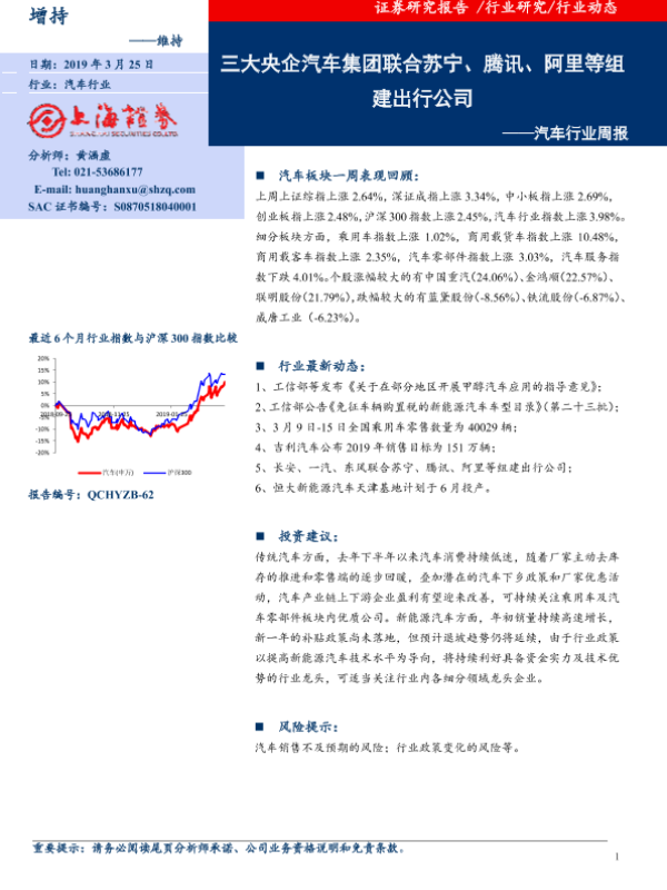 【上海证券】【20190325】20190325-上海证券-汽车行业周报:三大央企汽车集团联合苏宁、腾讯、阿里等组建出行公司-8页