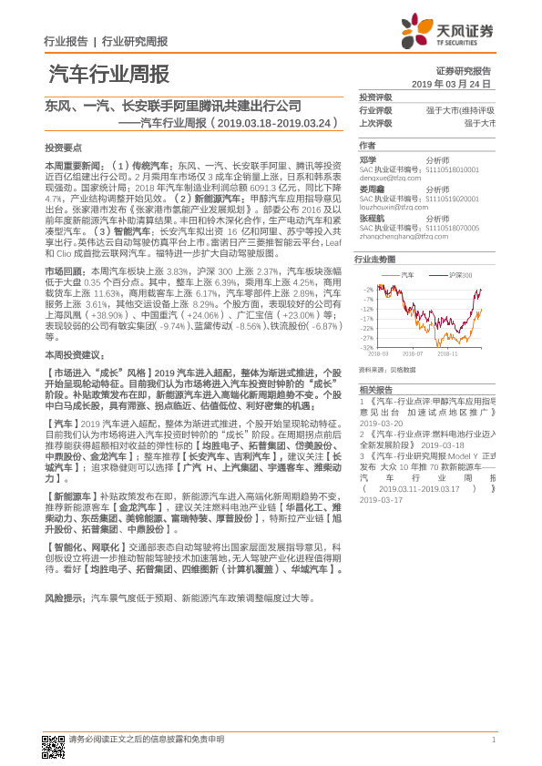 【天风证券】【20190324】汽车行业周报:东风、一汽、长安联手阿里腾讯共建出行公司-25页