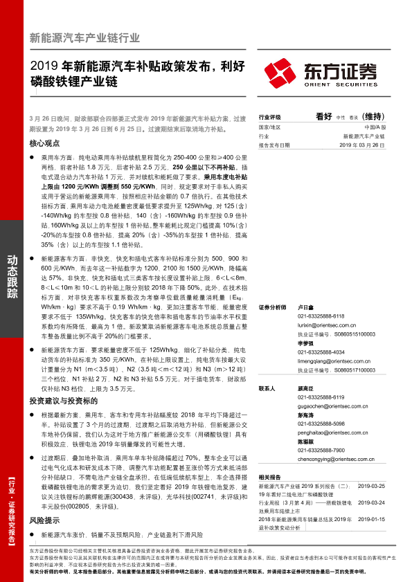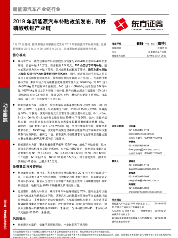 【东方证券】【20190326】2019年新能源汽车补贴政策发布,利好磷酸铁锂产业链-3页