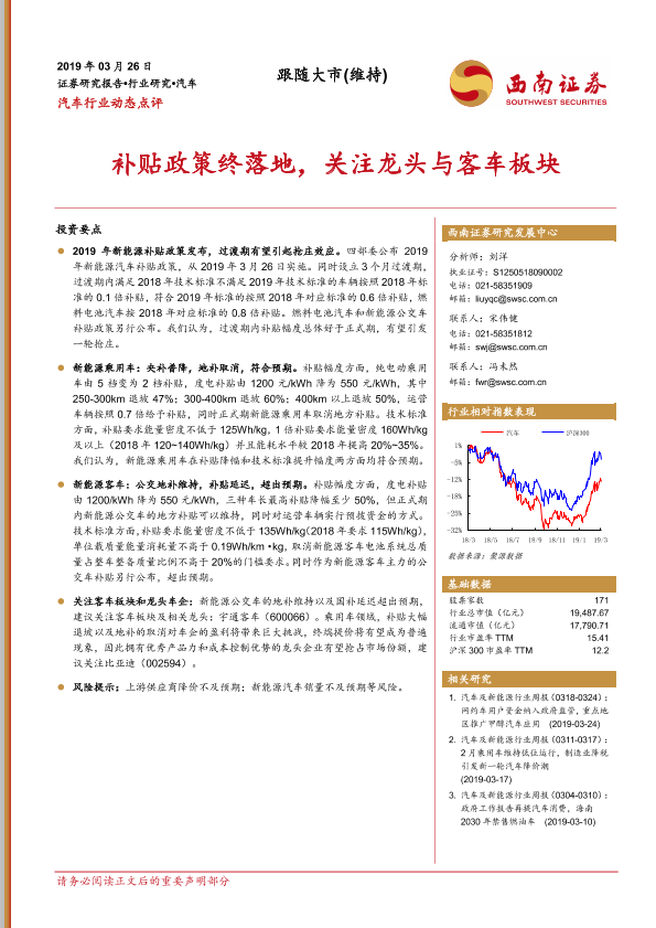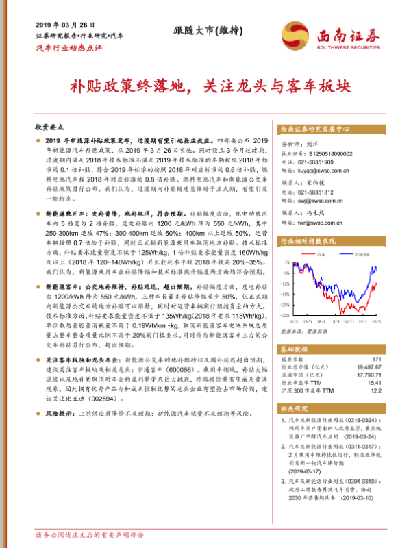 【西南证券】【20190326】汽车行业动态点评:补贴政策终落地,关注龙头与客车板块-3页
