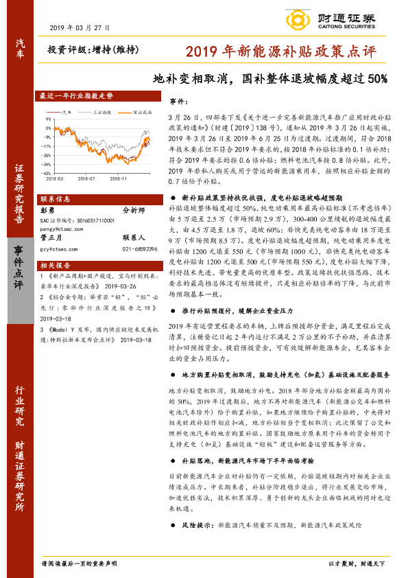 新能源汽车 汽车行业 补贴政策 财政补贴 财通证券
