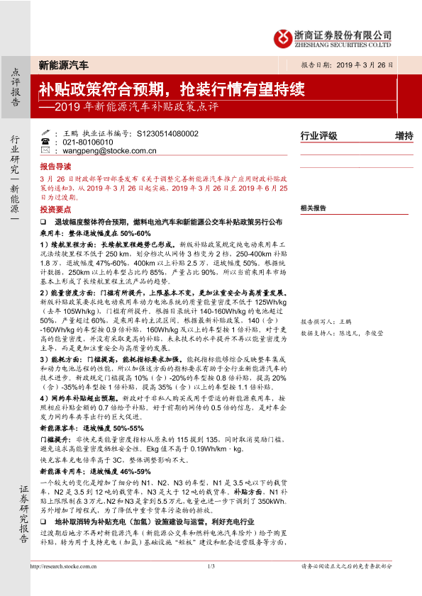 【浙商证券】【20190326】2019年新能源汽车补贴政策点评:补贴政策符合预期,抢装行情有望持续-3页