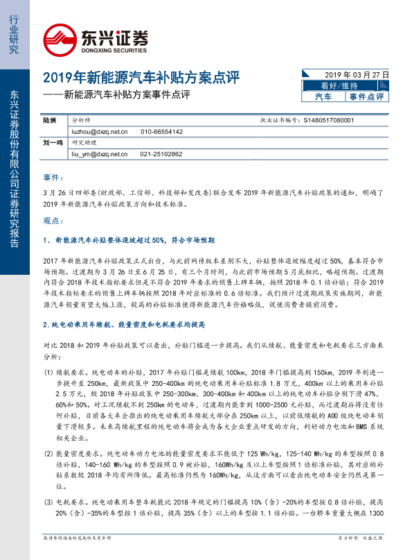 【东兴证券】【20190327】2019年新能源汽车补贴方案点评-6页