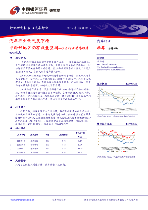 【银河证券】【20190326】3月汽车行业动态报告:汽车行业景气度下滑,中西部地区仍有放量空间-17页