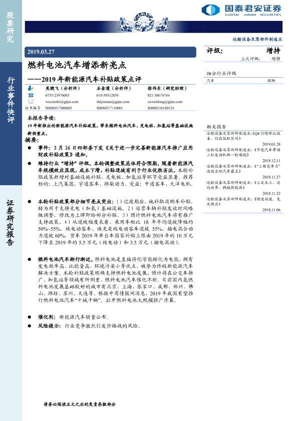 【国泰君安证券】【20190327】2019年新能源汽车补贴政策点评:燃料电池汽车增添新亮点-5页